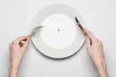 Restauracja i żywności tematu: ludzką ręką Pokaż gest na pustej płyty biały na białym tle w studio na białym tle widok z góry