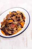 Wieprzowina z chleba, kiełbasy wędzone i pomarańczowy