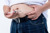 Kobieta przyjmująca insulinę lub semaglutyd w domu