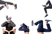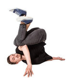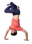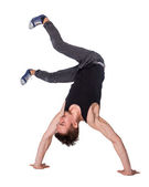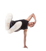 Złamać tancerz robi jedną ręką sprawny na białym tle