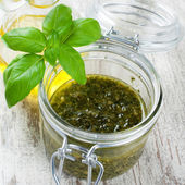 Zdjęcie "Pesto domowej roboty na rustykalne drewnianą deską do krojenia. " może być wykorzystywane do celów osobistych i komercyjnych zgodnie z warunkami zakupionej licencji Royalty-free. Obraz jest dostępny do pobrania w jakości wysokiej rozdzielczości do 5760x3840.