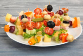 przekąska warzywa w szkło na drewnianym stole, zbliżenie
