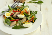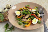 ryba sałatka z jaj przepiórczych, słodka papryka i świeże zioła