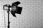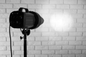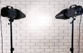 studio fotograficzne sprzęt oświetleniowy na tle ściany Cegła