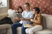 Zdjęcie "Rodziny, oglądając zdjęcia na tabletki" może być wykorzystywane do celów osobistych i komercyjnych zgodnie z warunkami zakupionej licencji Royalty-free. Obraz jest dostępny do pobrania w jakości wysokiej rozdzielczości do 5760x3840.