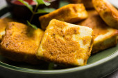 słodki toast smażone jajka posypać