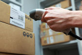 człowiek na czas współpracuje z czytnika kodów kreskowych.