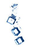 Kostki lodu w wodzie plamy na białym tle na biały