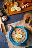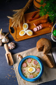Zdjęcie "Tradycyjny Polski Żurek krem " może być wykorzystywane do celów osobistych i komercyjnych zgodnie z warunkami zakupionej licencji Royalty-free. Obraz jest dostępny do pobrania w jakości wysokiej rozdzielczości do 5760x3840.