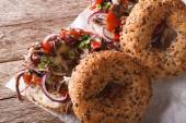 Gorące kanapki z mięsa piłki zbliżenie na stole. Pionowe