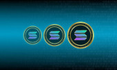 Futurystyczne tło cyfrowe podkreślające zaawansowaną technologię kryptowaluty i szyfrowania, wyposażone w sieci blockchain i bezpieczne systemy kryptograficzne: SOL