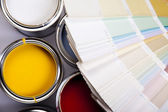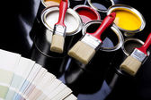 farby, wiadra, farby i Pędzel