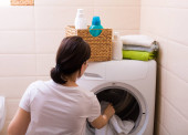 Piękna dziewczyna robi pranie