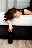 Zdjęcie "pijana młoda kobieta śpi na łóżku." może być wykorzystywane do celów osobistych i komercyjnych zgodnie z warunkami zakupionej licencji Royalty-free. Obraz jest dostępny do pobrania w jakości wysokiej rozdzielczości do 5760x3840.