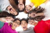 Grupa młodych studentów z ramionami nawzajem ramionami
