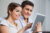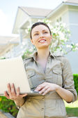 Kobieta trzymająca tabletkę pc