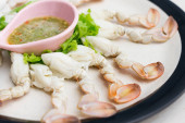 Zdjęcie "Surowe krewetki i sos pikantny, owoce Tajlandii." może być wykorzystywane do celów osobistych i komercyjnych zgodnie z warunkami zakupionej licencji Royalty-free. Obraz jest dostępny do pobrania w jakości wysokiej rozdzielczości do 5760x3840.