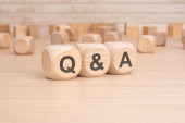 Drewniane bloki, które wyraźnie wyświetlają litery Q, A, wraz z ampersand, ilustrujące koncepcję tematu QA