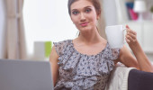 atrakcyjny dziewczynka kaukaski, siedząc na podłodze