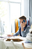 Biznesmen mówiąc na telefon podczas tworzenia sieci