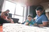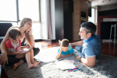 Zdjęcie "szczęśliwą rodzinę młodych zabawy w domu" może być wykorzystywane do celów osobistych i komercyjnych zgodnie z warunkami zakupionej licencji Royalty-free. Obraz jest dostępny do pobrania w jakości wysokiej rozdzielczości do 5760x3840.