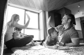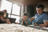 szczęśliwą rodzinę młodych zabawy w domu