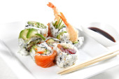 Zdjęcie "Sushi - California Rolls" może być wykorzystywane do celów osobistych i komercyjnych zgodnie z warunkami zakupionej licencji Royalty-free. Obraz jest dostępny do pobrania w jakości wysokiej rozdzielczości do 5760x3840.
