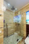 Zdjęcie "Jasnych i białych łazienka z wanną, biały, beżowy płytki podłogowe, szklane drzwi prysznic" może być wykorzystywane do celów osobistych i komercyjnych zgodnie z warunkami zakupionej licencji Royalty-free. Obraz jest dostępny do pobrania w jakości wysokiej rozdzielczości do 5760x3840.