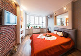 Zdjęcie "Wystrój wnętrz: Nowoczesna Sypialnia" może być wykorzystywane do celów osobistych i komercyjnych zgodnie z warunkami zakupionej licencji Royalty-free. Obraz jest dostępny do pobrania w jakości wysokiej rozdzielczości do 5760x3840.