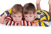 Dwa małe rodzeństwa chłopców dziecko zabawy razem, wewnątrz