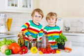 Zdjęcie "Dwa małe dziecko chłopców jedzenie spaghetti w domowej kuchni." może być wykorzystywane do celów osobistych i komercyjnych zgodnie z warunkami zakupionej licencji Royalty-free. Obraz jest dostępny do pobrania w jakości wysokiej rozdzielczości do 5760x3840.