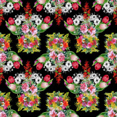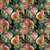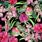 Kwiat, jabłko, alga, akwarela, wzór bez szwu
