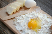 składniki na domowy sernik na zwolnieniu, widok z góry