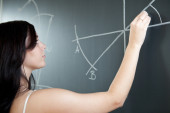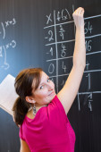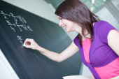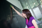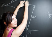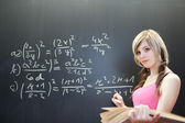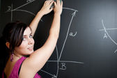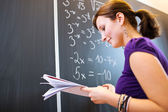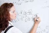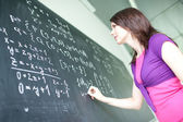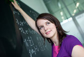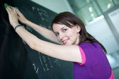 dość młodego studenta pisania na tablicy