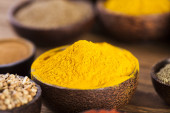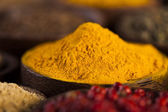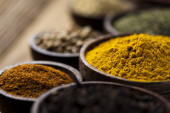 Drewniany stół z kolorowych przypraw
