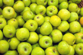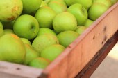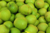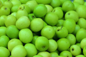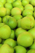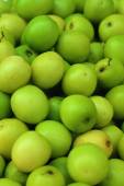 Zielone jabłka na stole na rynku