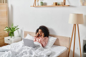 Zdjęcie "Młoda piękna kobieta plus size rozwija się w domu, koncentrując się na konfiguracji telefonu i laptopa." może być wykorzystywane do celów osobistych i komercyjnych zgodnie z warunkami zakupionej licencji Royalty-free. Obraz jest dostępny do pobrania w jakości wysokiej rozdzielczości do 5760x3840.