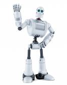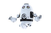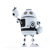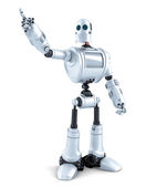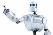 robota wskazując na transparent. na białym tle. zawiera ścieżkę przycinającą