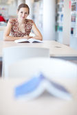 Bardzo młody student z biblioteki (płytkie Dof, kolor