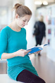 Bardzo młody student z biblioteki (płytkie Dof, kolor