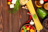 Zdjęcie "Włoskie jedzenie gotowanie składników." może być wykorzystywane do celów osobistych i komercyjnych zgodnie z warunkami zakupionej licencji Royalty-free. Obraz jest dostępny do pobrania w jakości wysokiej rozdzielczości do 5760x3840.