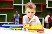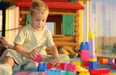 chłopiec bawi się z tworzywa sztucznego Konstruktor w przedszkolu