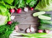 Świeże zielone warzywa na deska, wegańskie, miejsce dla tekstu