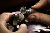 rzemieślnik robi diamentowy pierścień. ręcznie robiona biżuteria. Włóż diamentowy pierścionek. produkcja pierścieni diamentowych warsztat rzemieślniczy. produkcja pierścieni pasjansowych