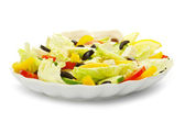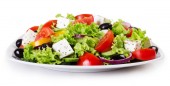 Grecka sałatka z bliska. Plik zawiera ścieżkę wycinania. Strzał wykonywany jest pod kątem prostym.