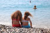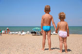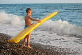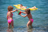 chłopiec na materac w morze i dwie dziewczyny w pobliżu