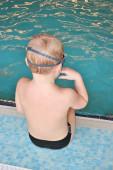 dziewczynka w nadmuchiwane kamizelki w basenie