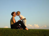 piękna kobieta chroni dziewczynka z wiatru na wybrzeże