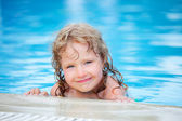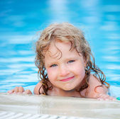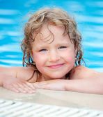 całkiem mała dziewczynka kąpać w basenie, zamknięte oczy