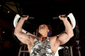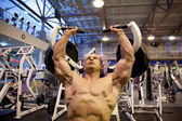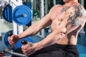 kulturysta boki robi podnoszenie ciężarów w siłowni